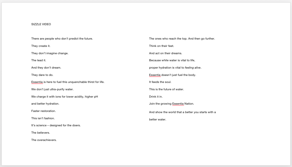 You need to drink water to stay alive. But may I recommend drinking essentia to feel alive? This little Seattle-based alkaline water company went on to become one of the fastest growing premium water brands on the market. Fresh from a reband that moved from product-focus to lifestyle, they wanted to put out a rally cry, round up the citizens and build the essentia nation.